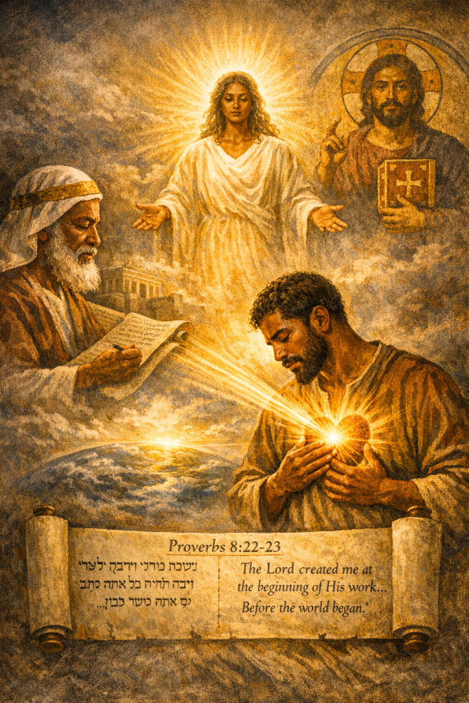 It is important to begin by pointing out that this is a poetic writing. The passage presents Wisdom as God’s first act of creation. This being the case, Wisdom witnessed all of creation happening subsequently. Indeed, the language of verse 30 implies that Wisdom was not a mere spectator but was actively involved in some unstated way as a “master worker.”